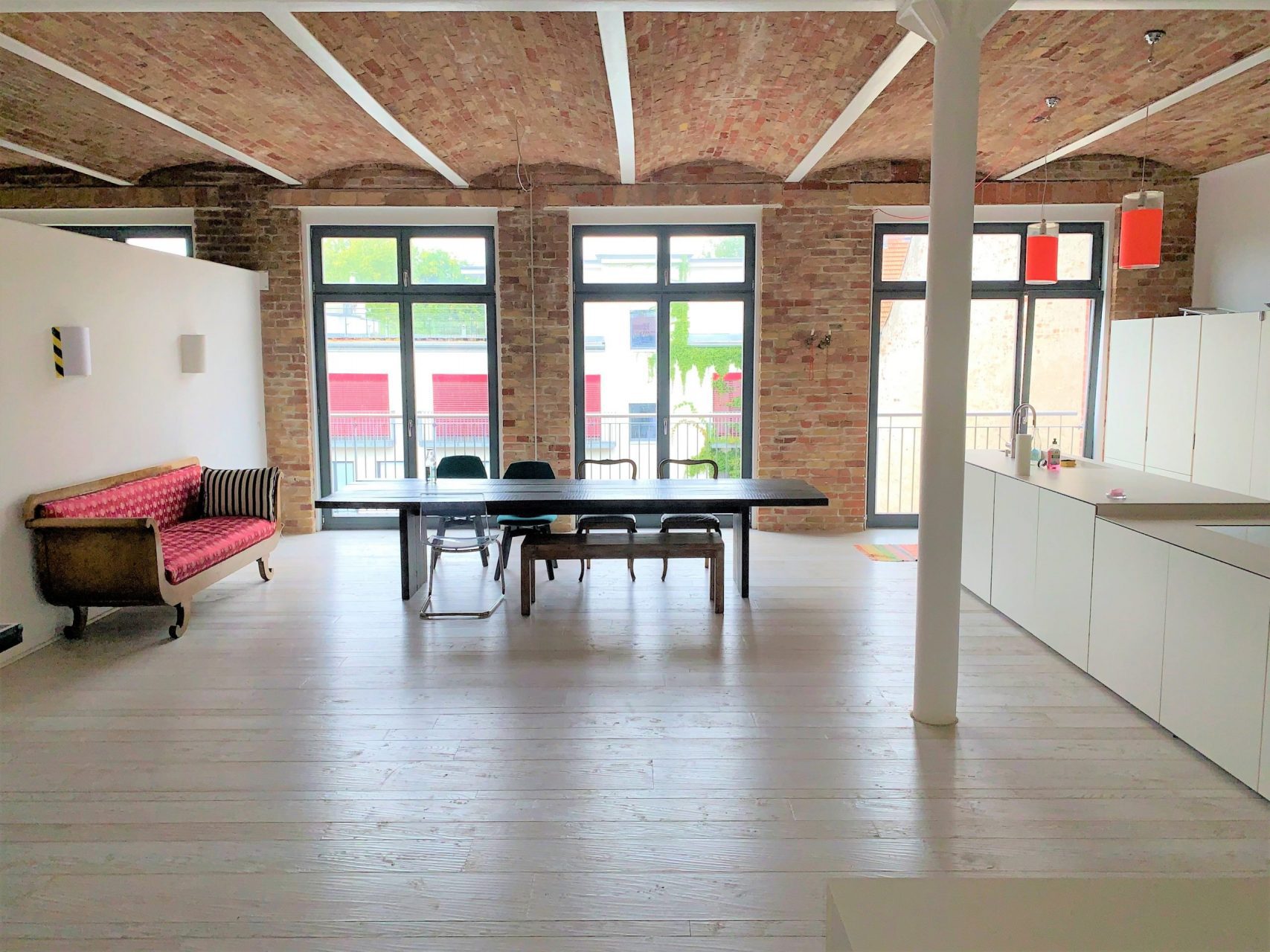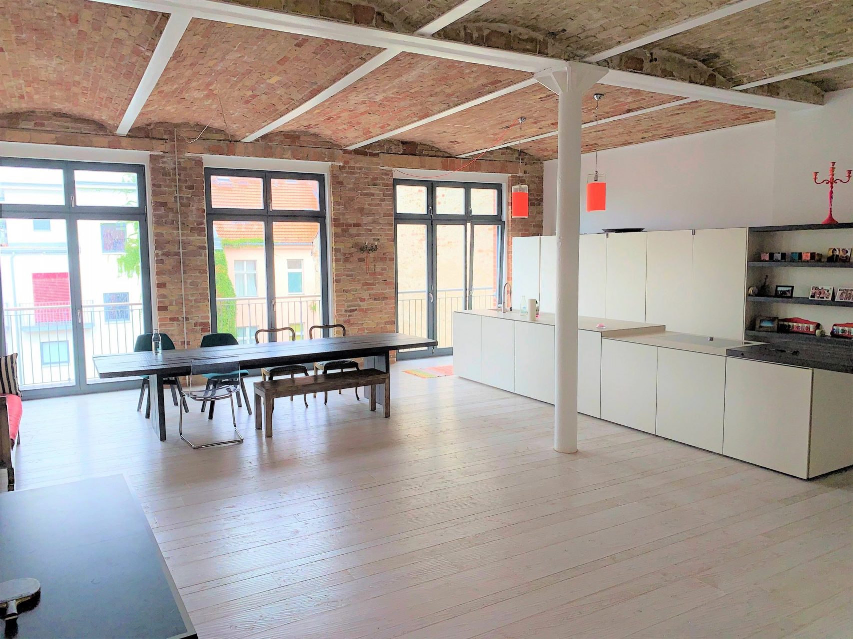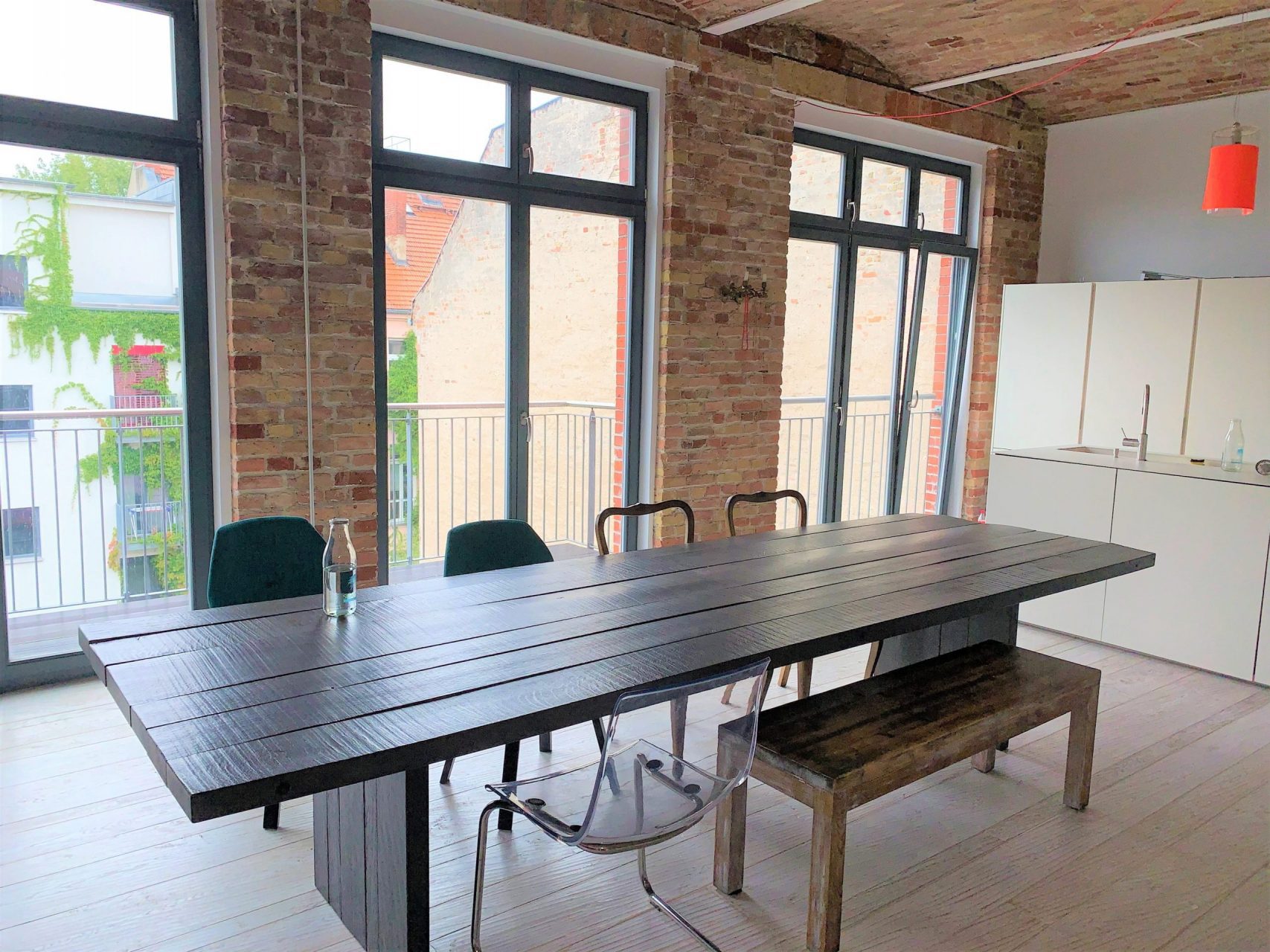 Das Objekt befindet sich in zweiter Reihe bzw. im zweitem Hof direkt am Mariannenplatz in Berlin-Kreuzberg. In 2014 wurde das markante Backsteingebäude umfangreich saniert. Das loftartige Penthouse befindet sich im 4. und 5.OG. Es diente als Zweitwohnsitz bzw. es ist nicht durchgehend bewohnt gewesen. Der Zustand ist neuwertig. Die bodentiefen Fenster und das freigelegte Mauerwerk verleihen der Wohnung einen einzigartigen Charakter der New Yorker Loftgebäude und Industrielofts. Weitere Ausstattungsmerkmale sind eine offene Küche mit hochwertiger EBK, Echtholzparkett mit Fußbodenheizung, 3 separate Schlafzimmer mit weiteren Gestaltungsmöglichkeiten sowie ein Vollbad und ein Gäste-WC. Das Highlight dieser Wohnung ist die weitläufige Aufdachterrasse mit herrlichen Panoramablick und Privatsphäre. Es stehen der Wohnung außerdem 2 Stellplätze zu Verfügung. In fußläufiger Entfernung befinden sich zahlreiche gastronomische Angebote, Einkaufs- und Ausgehmöglichkeiten, Kindergärten und Schulen. Eine Anbindung an den öffentlichen Nahverkehr besteht über Buslinien 140 und 147 sowie die U-Bahn-Station am Görlitzer Bahnhof.