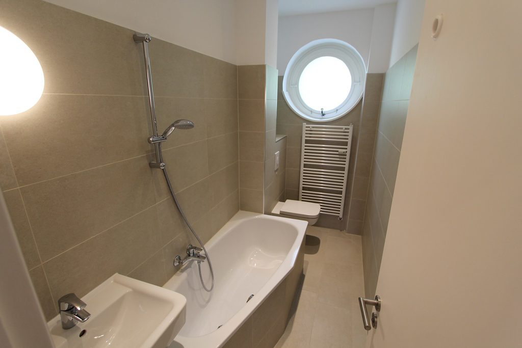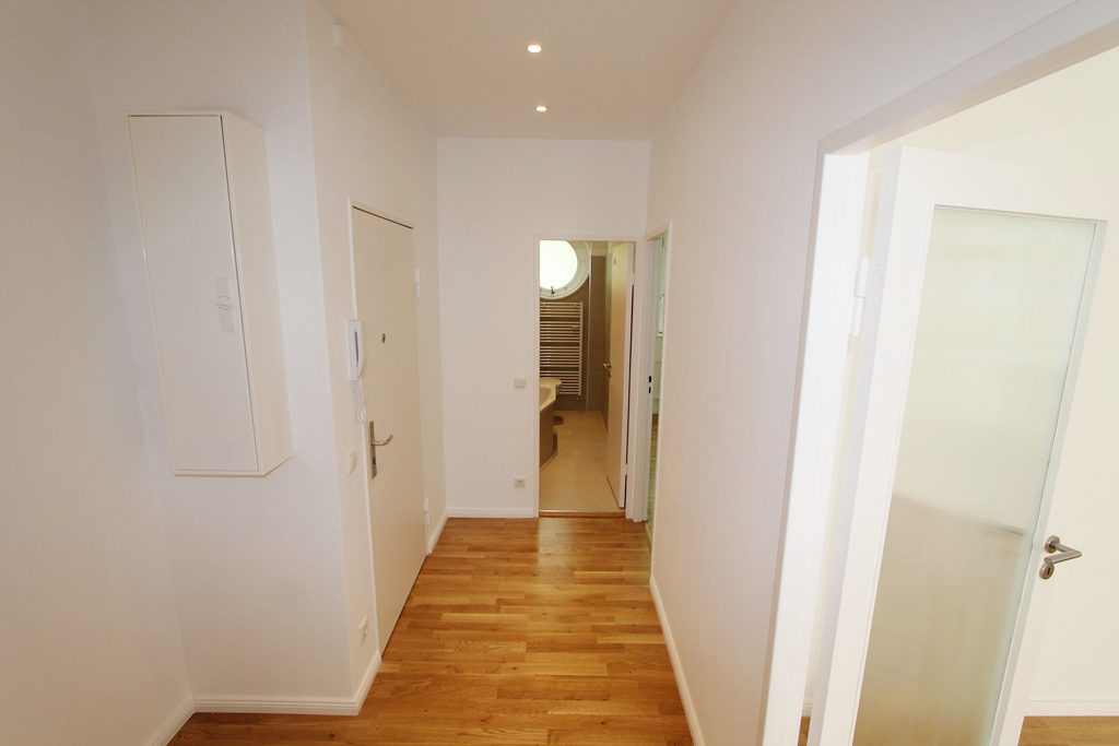 Bei dieser hellen Wohnung handelt es sich um eine renovierte 2-Zimmer Wohnung mit sehr praktischen Grundriss im 1.OG. Im Rahmen der Renovierung wurde neues Fertigparkett (Eiche) in den Wohnräumen verlegt und die Wände sind feinverputzt wurden. Die Wohnung bietet einen straßenseitigen wind- und sichtgeschützten Balkon, der zur Südwest Seite und viel Sonne ausgerichtet ist. Die Wohnung bietet außerdem ein sehr schickes und modernes Badezimmer (mit Fenster, Badewanne, Lamellenheizkörper und Fußbodenheizung). Die Strangleitungen im Gemeinschaftseigentum bzw. im Objekt sind ebenfalls komplett erneutert worden. Eine neu geflieste (leerstehende) Küche steht bereit. Das Haus bietet allen Bewohnern einen neu installierten Aufzug. Die Heiz-und Warmwasser Erzeugung ist auf Zentralheizung bzw. Fernwärme umgestellt worden. PKW-Stellplätze sind gegen Aufpreis (15.000€) separat erwerbbar.