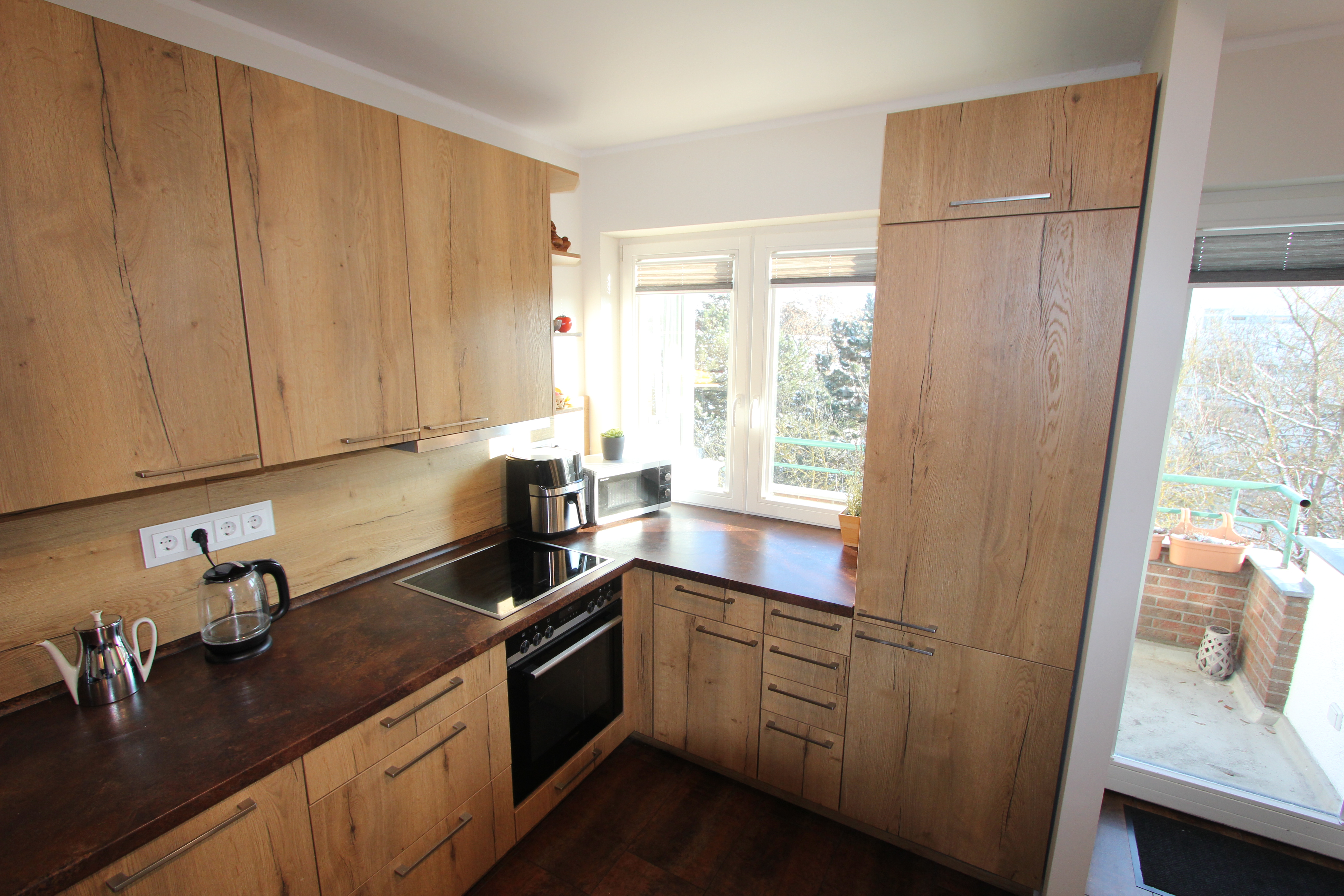 Der durchdachte Grundriss, die hohen Decken und der großzügige Wohnbereich schaffen ein helles, offenes Wohngefühl. Ein besonderes Highlight ist der große Südost-Balkon mit Blick ins Grüne – ein idealer Ort für sonnige Morgenstunden und entspannte Abende. Hochwertige Isolierfenster, Feinputzwände, edle Steinböden und eine stilvolle Designbeleuchtung unterstreichen den modernen Charakter der Wohnung.